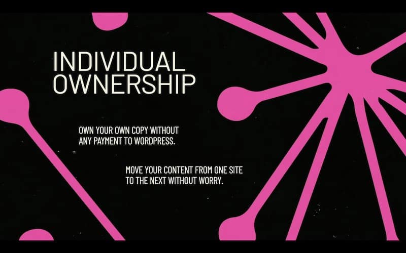 The other key is individual ownership. So in WordPress as with some of the best web three products, you own your own content, the code, everything to run it without any payment to WordPress, you can move your content from one site to. Easily. In fact, WordPress is export format has become the de facto standard for all of their CMS system.