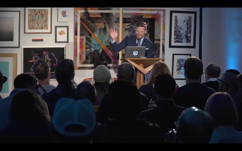 Or if you are watching at home, you can head on over to the YouTube embed of this, uh, live stream. And we are monitoring the chat there for questions as well. Um, that is all that I have to say. Um, and I think that’s probably all that you want to hear from me anyway. And so tonight giving our annual state of the word where we talk about everything we’ve done this year and everything we hope to do next year is of course WordPress project.