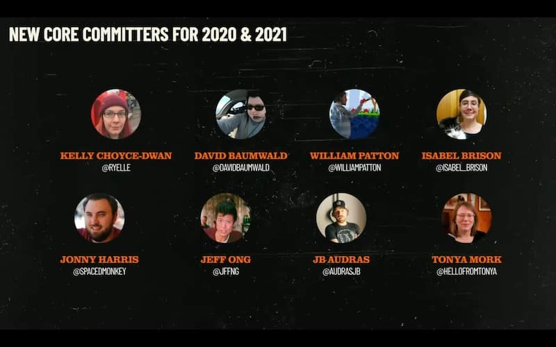One of the things I want to highlight first was our eight new core committers, both the core and themes. So let’s do a round of applause.