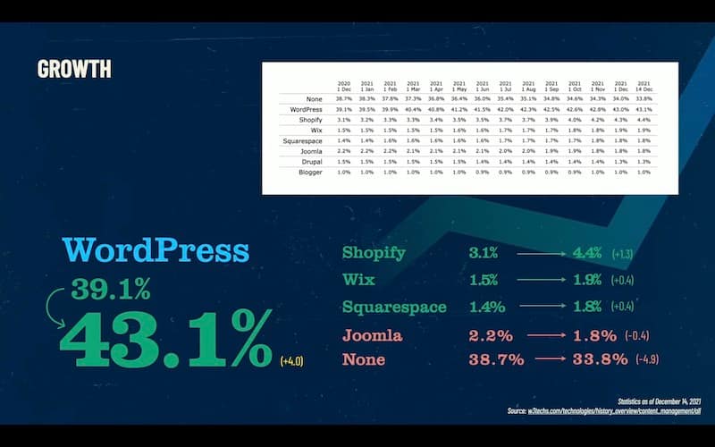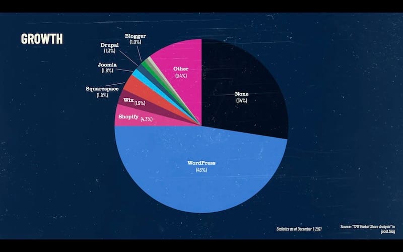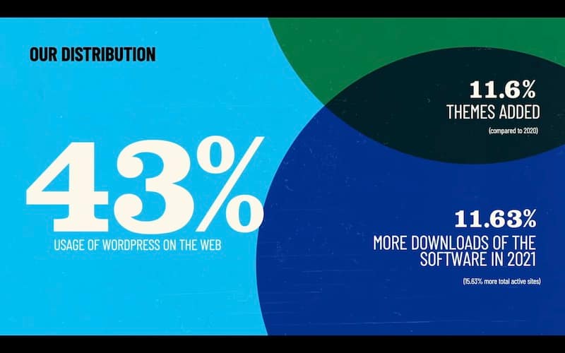 And so I think this is actually one of our biggest opportunities to just expand the knowledge of really what WordPress is, and also define to a new audience, what WordPress is through these courses. We had a pretty good year for growth as well. So in the distribution of WordPress, and I’m proud to announce that according to w through texts, we now power 43% of the website
