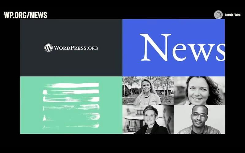 Some guests audio. We weren’t able to get people from around the world all to New York, but we have some audio that working in the redesign of the news page in wordpress.org, the general inspiration was last year’s state of the word presentation and overall jazz aesthetics, because the blog doesn’t have much imagery.